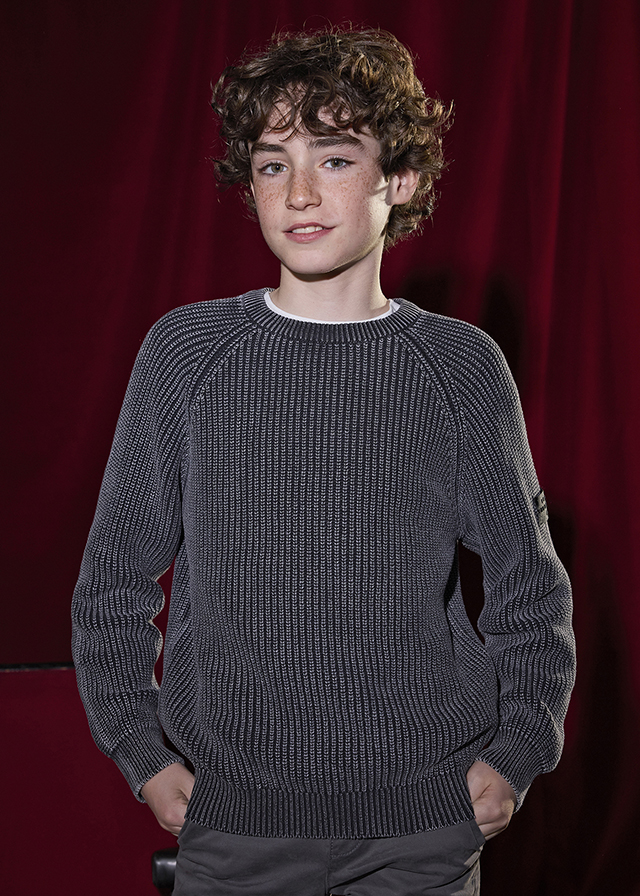 Πλεκτή μπλούζα σε γκρι απόχρωση με άνετη γραμμή, στρογγυλή λαιμόκοψη και λάστιχο στη μέση και τους καρπούς.