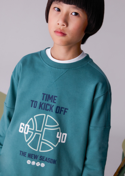 Η φούτερ μπλούζα μακρυμάνικη με στρογγυλεμένο γιακά και διακοσμητικές λεπτομέρειες.