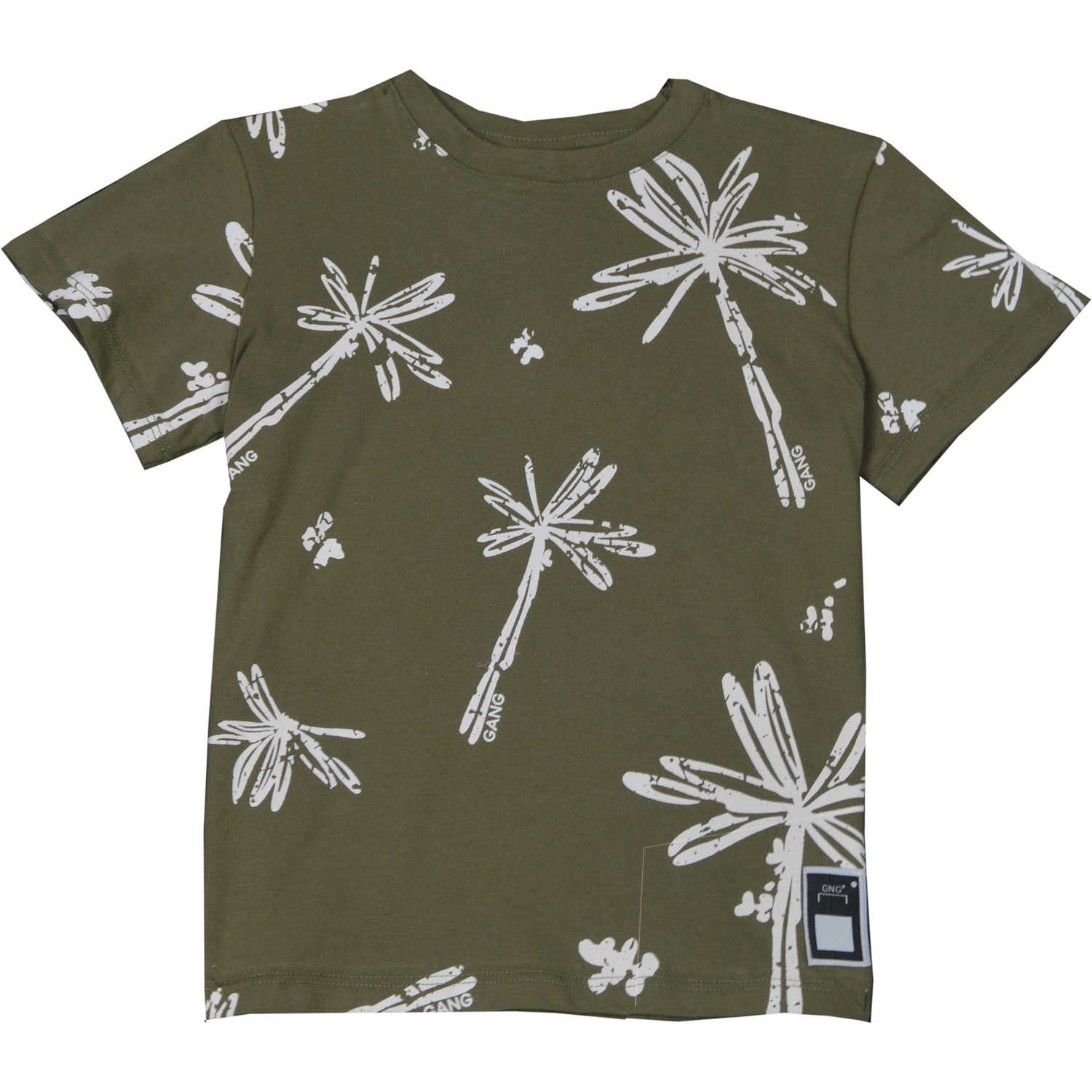 Μπλούζα με κοντό μανίκι σε λαδί πράσινο χρώμα με μοτίβα φοίνικες.