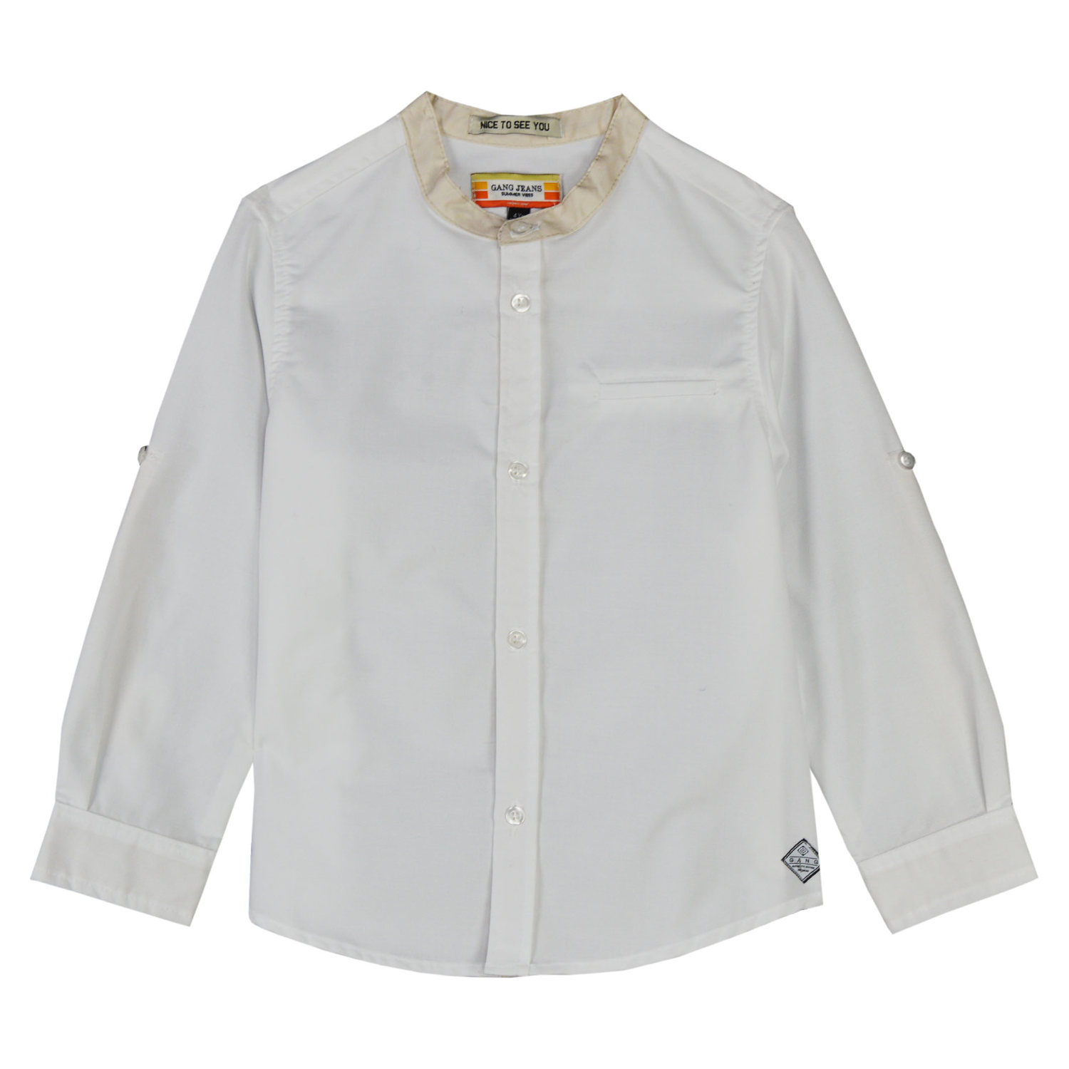 Λινό πουκάμισο λευκό Gang με μάο μπεζ γιακά , μπεζ μανσέτα και καφέ κουμπιά