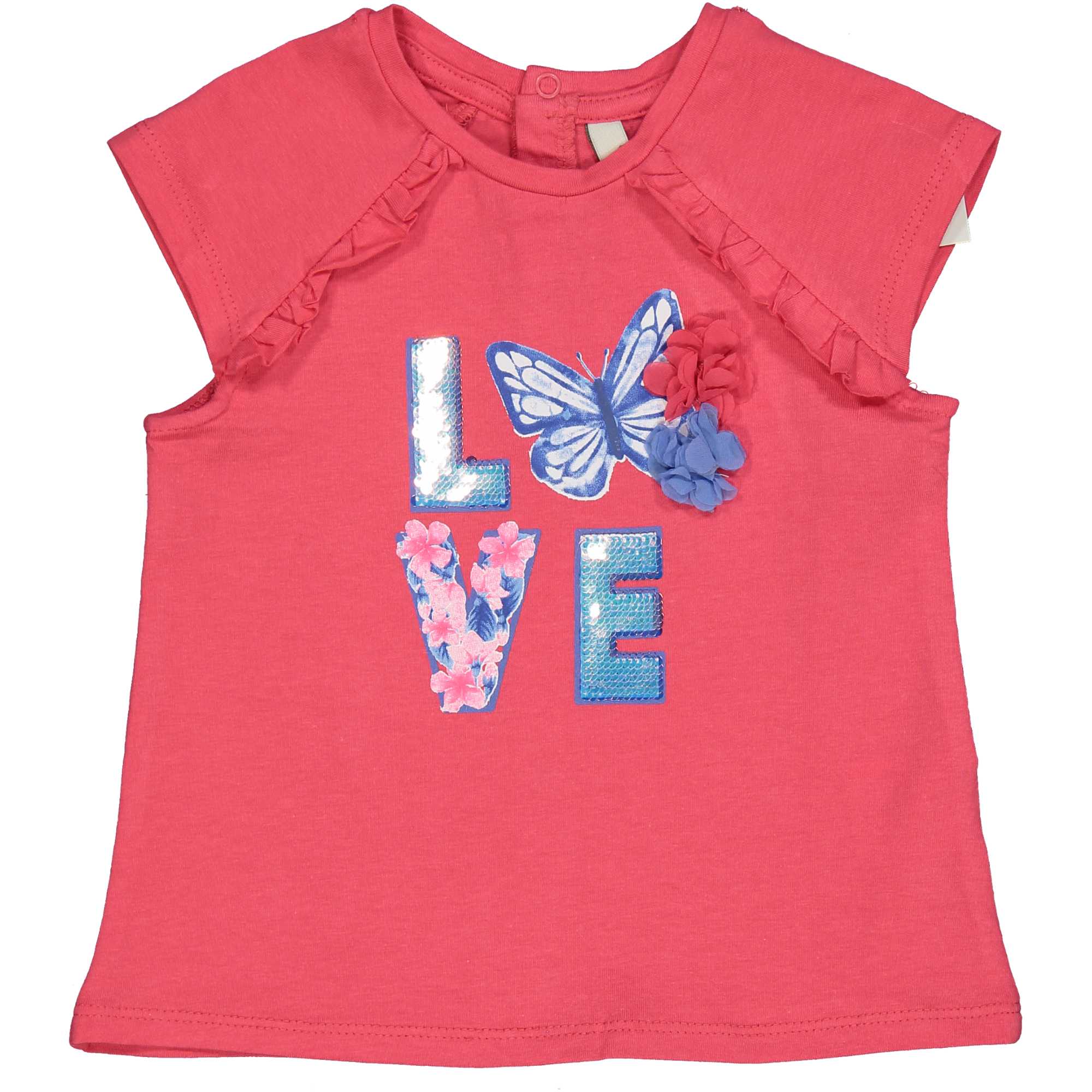Μπλούζα ροζ Birba με τύπωμα, βολάν και 3D λουλούδια.