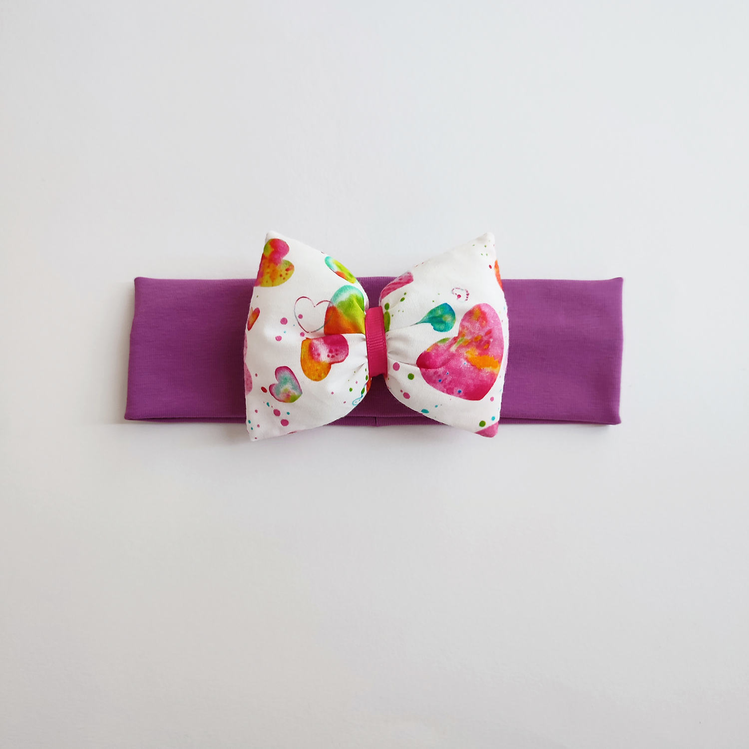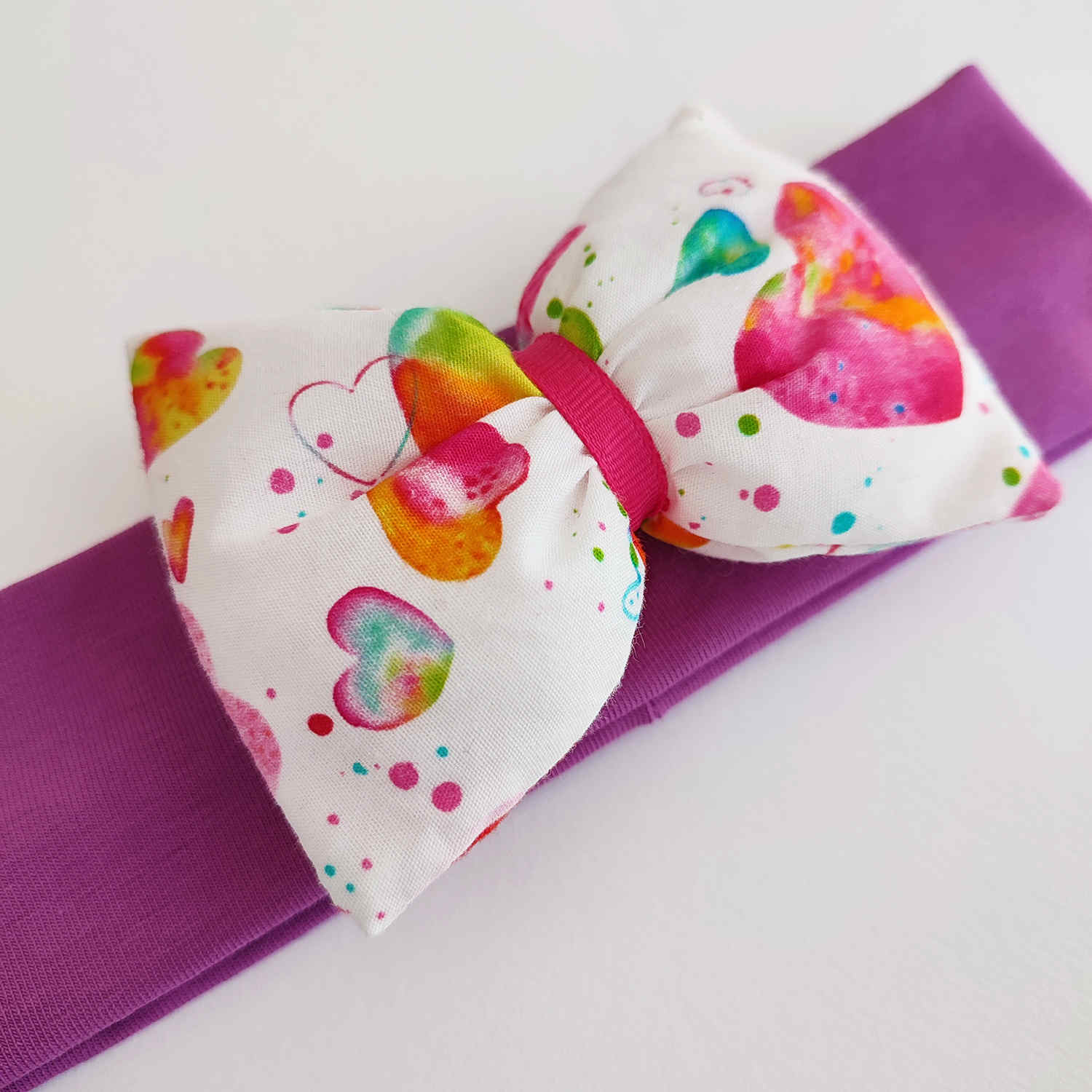 Κορδέλα σε μωβ, για 12-24 μηνών, με λευκό φιογκάκι με καρδιές.