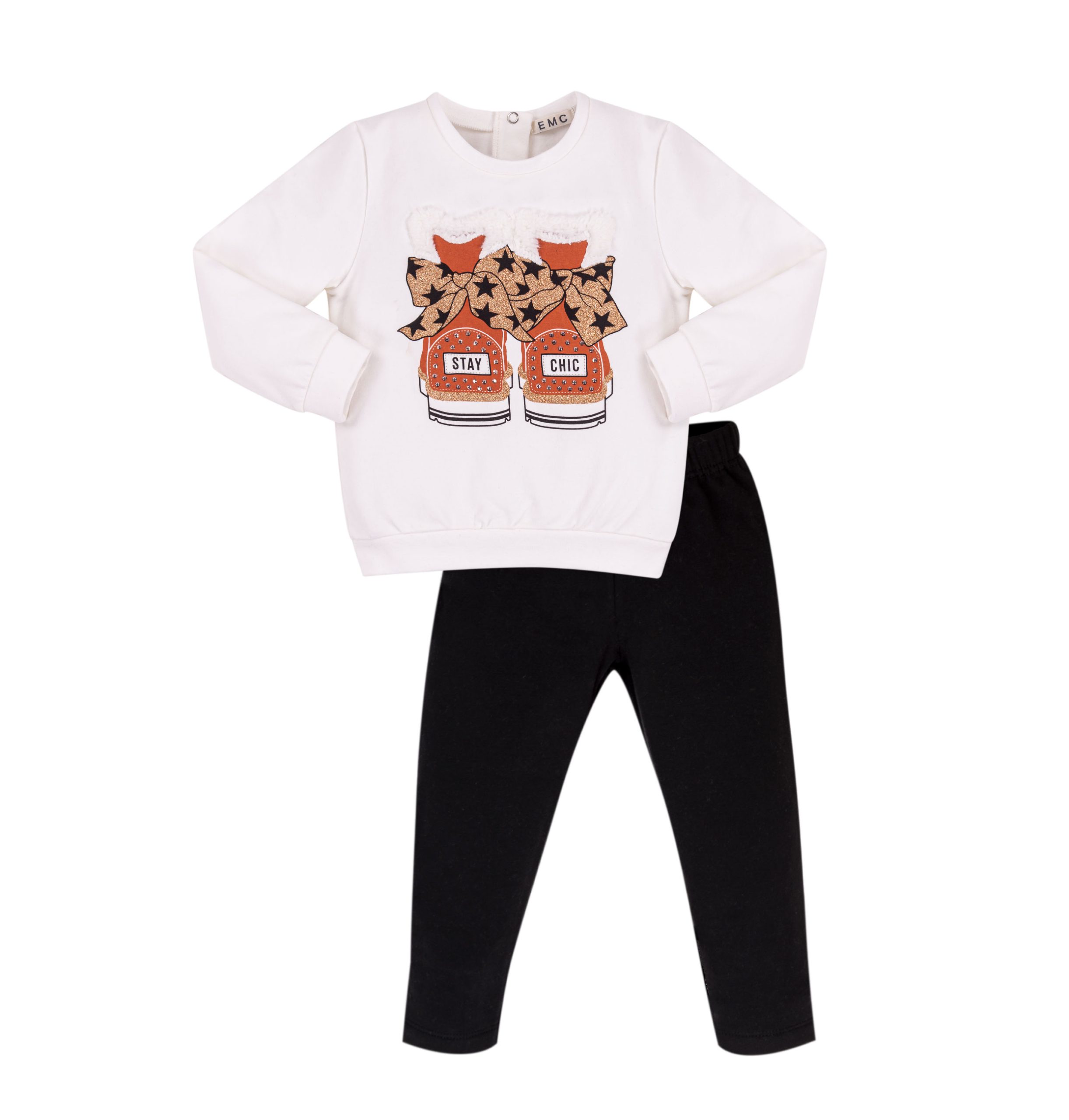 Σετ από λευκή βαμβακερή μπλούζα και βαμβακερό μαύρο κολάν της αγαπημένης εταιρείας EMC.