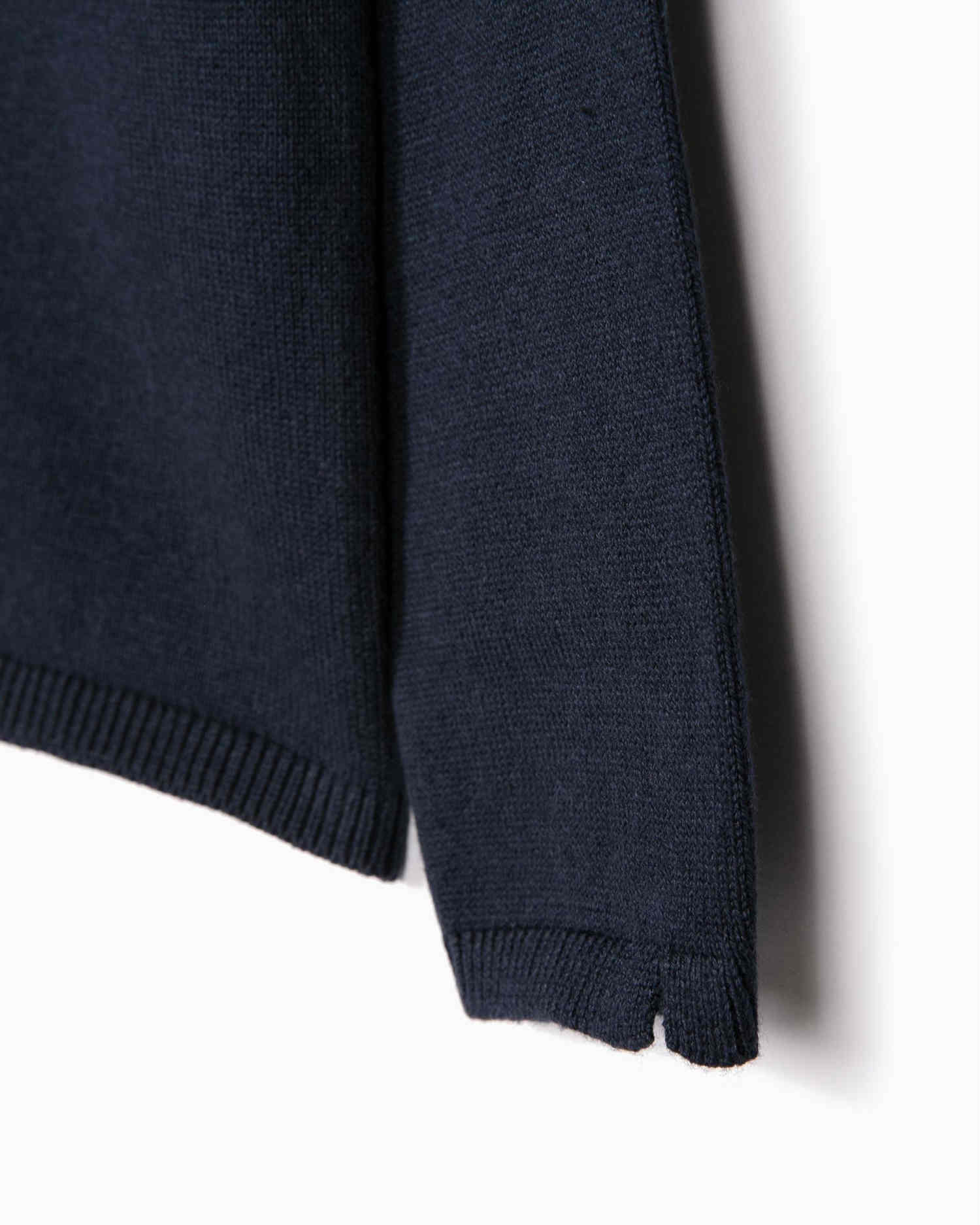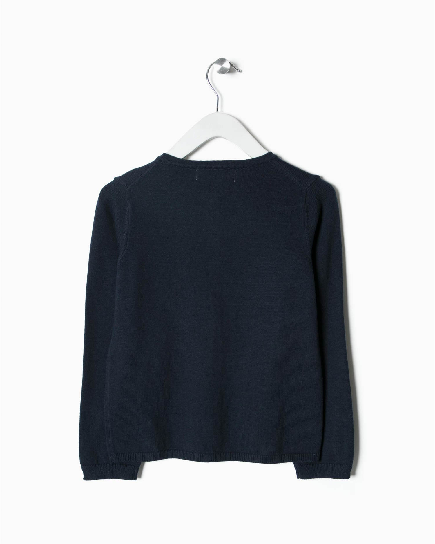 Σκούρα μπλε ζακέτα με κουμπιά μπροστά και μικρά ανοίγματα στο πλάι των μανικιών. Ένα κομμάτι ιδανικό για να συμπληρώσει μια ποικιλία εμφανίσεων.