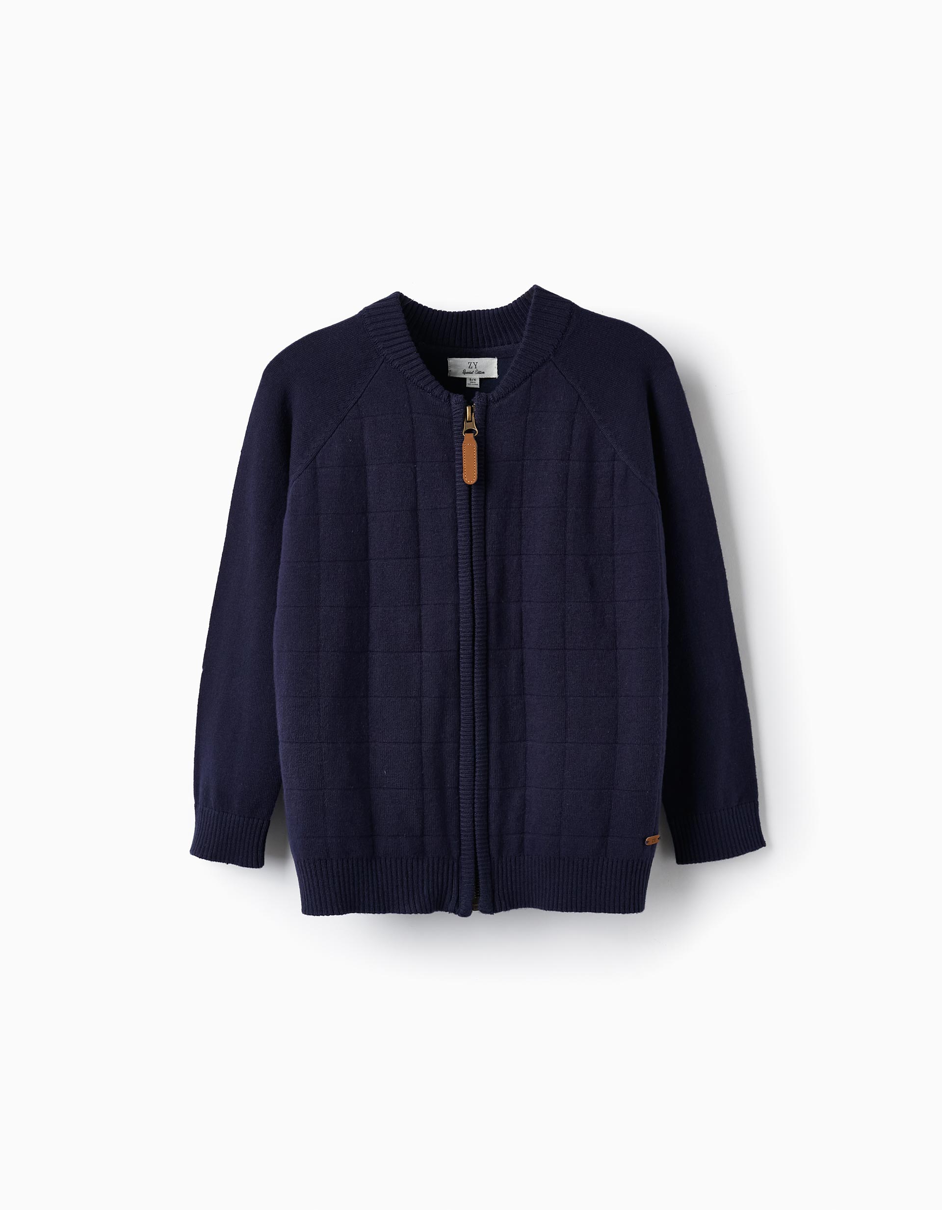 Σκούρα μπλε πλεκτή βαμβακερή ζακέτα για αγόρια. Κλείνει στο μπροστινό μέρος με φερμουάρ. Μια ζεστή και άνετη ζακέτα που μπορεί να φορεθεί για κάθε περίσταση.