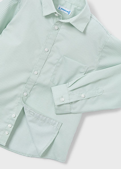 Μακρυμάνικο βαμβακερό πουκάμισο σε πράσινη απόχρωση με γιακά και κουμπιά στους καρπούς. Κλείνει με κουμπιά μπροστά.