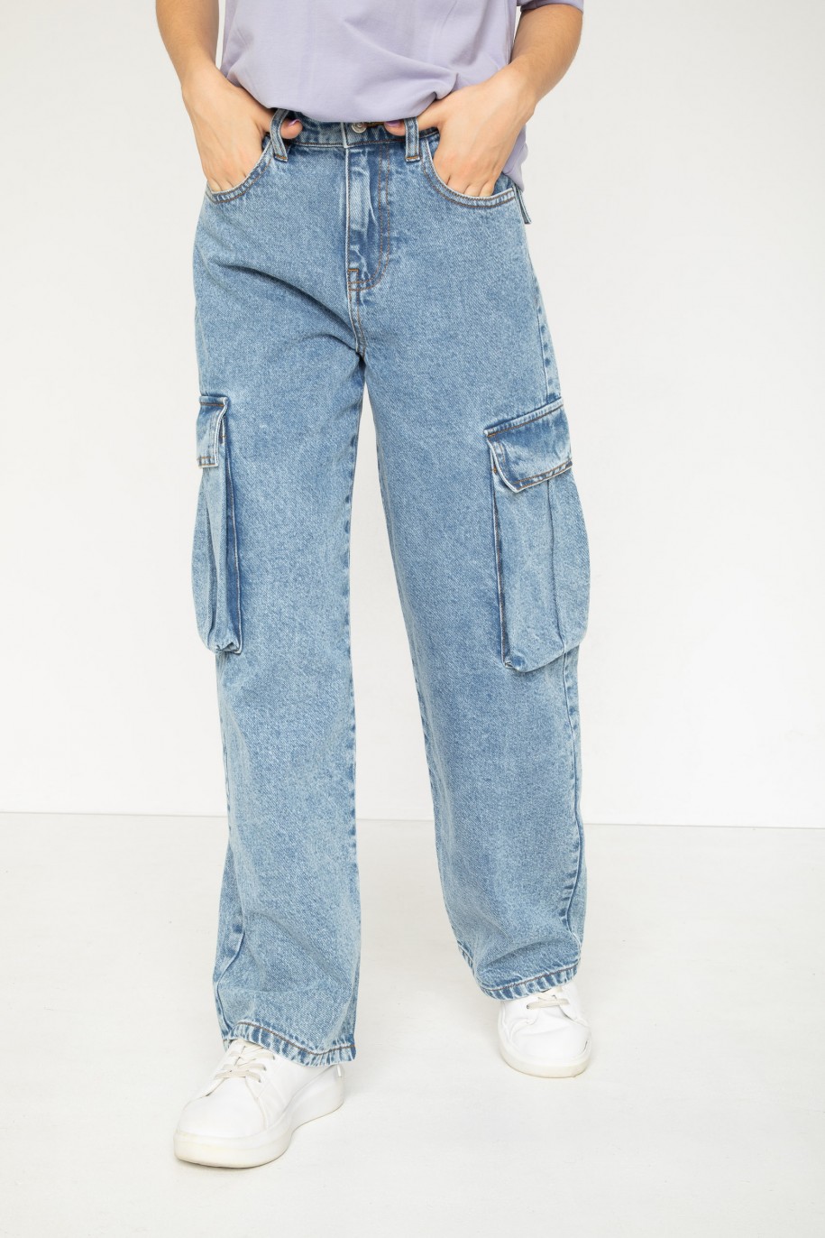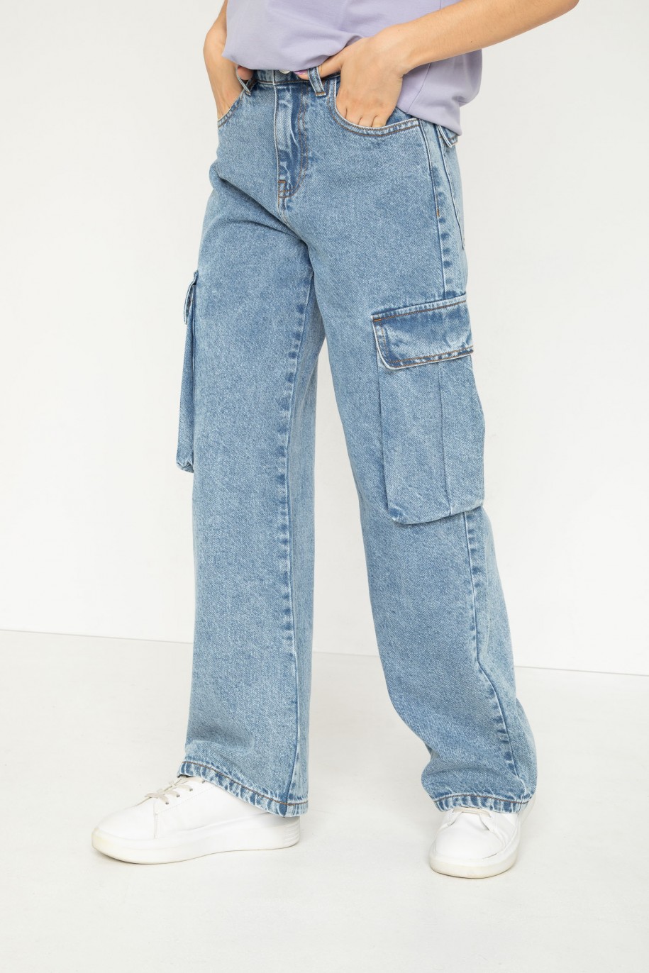 Τζιν παντελόνι τύπου cargo με τσέπες στο πλάι σε μπλε χρώμα.