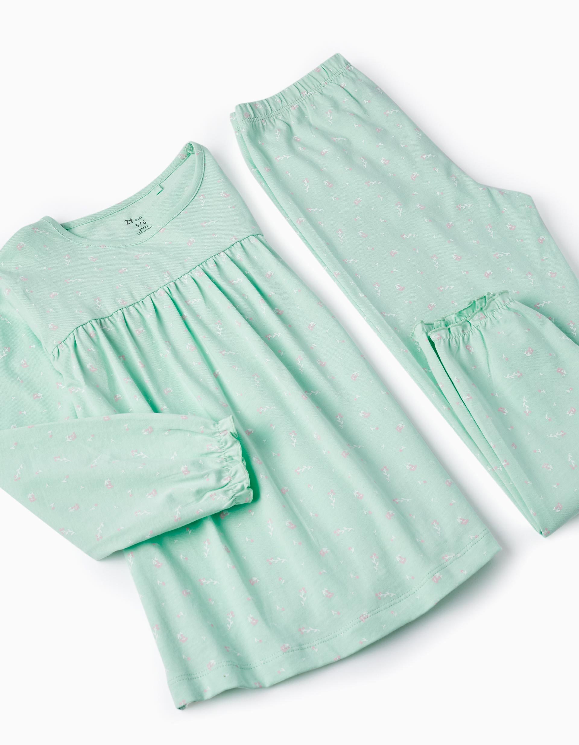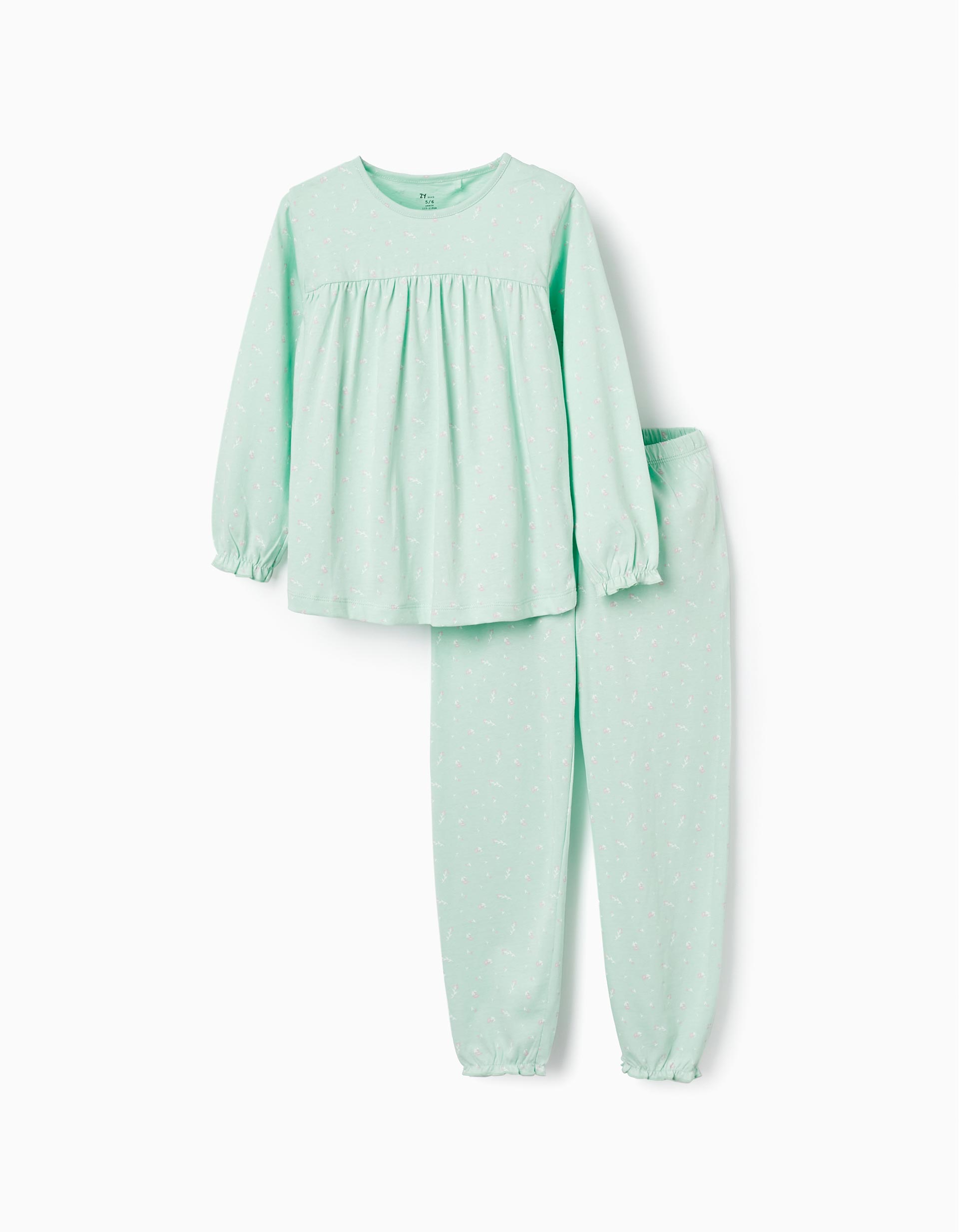 Βαμβακερή πιτζάμα με φλοράλ μοτίβο για κορίτσια. Περιλαμβάνει μακρυμάνικο τοπ και παντελόνι με λάστιχο στη μέση.