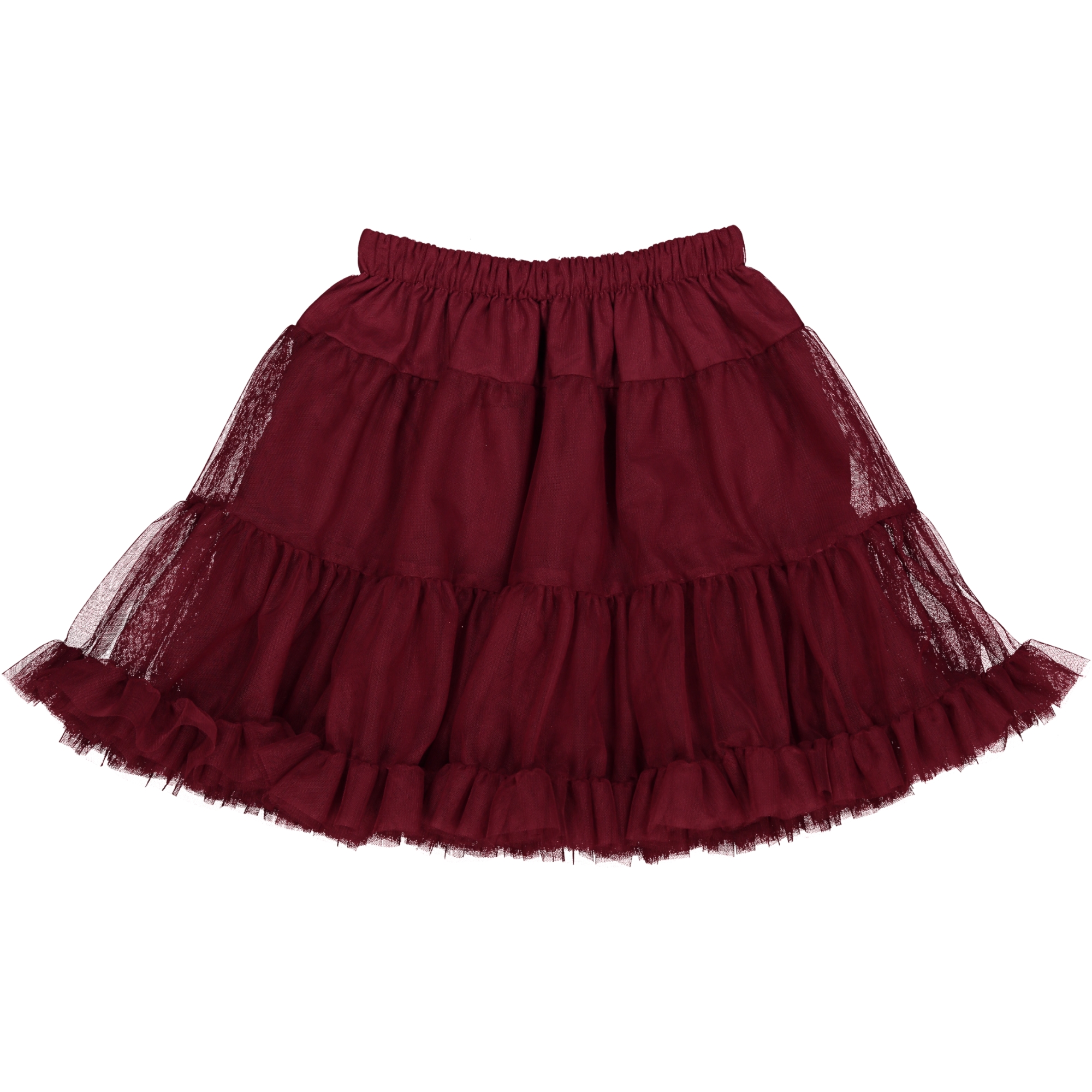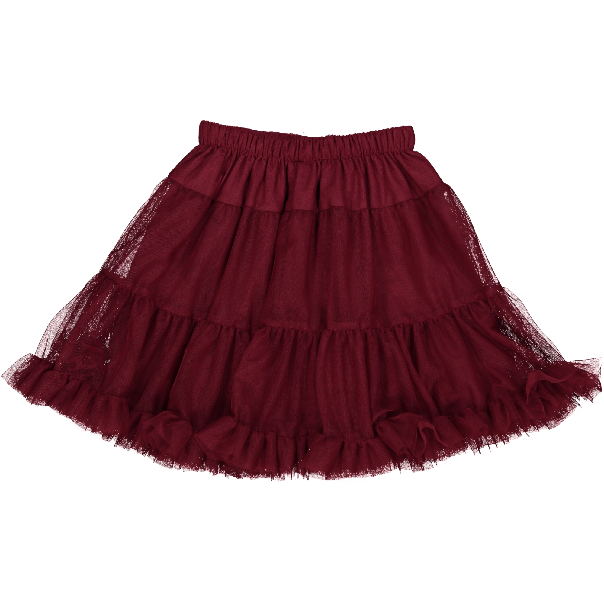 Η φούστα διαθέσιμη σε μπορντό απόχρωση.