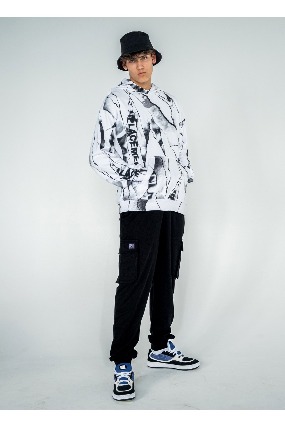 Φούτερ βαμβακερή μπλούζα με ασπρόμαυρο pattern η οποία διαθέτει,