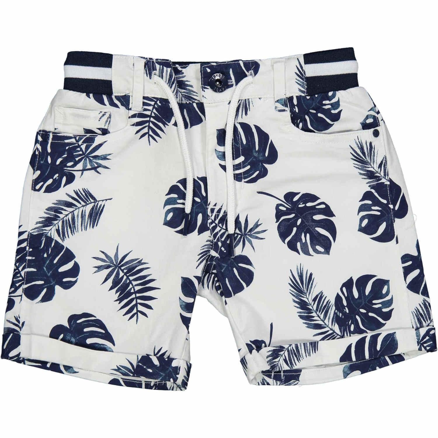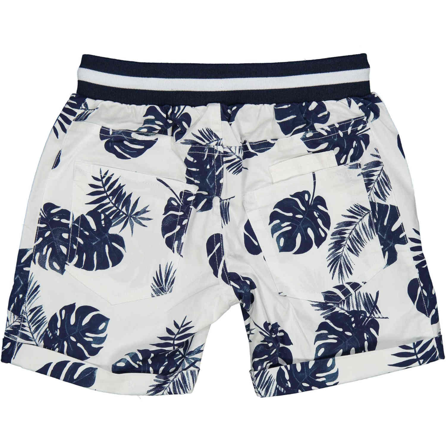 Λευκή βερμούδα με σχέδια φύλλα σε μπλε χρώμα. Έχει δύο τσέπες μπροστά και τρεις πίσω, λάστιχο στη μέση και κορδόνι και κλείνει με φερμουάρ και κουμπί.