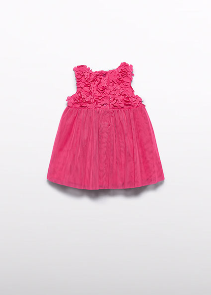 Φόρεμα με 3d λουλούδια σε φούξια απόχρωση. Η φόδρα 100% βαμβακερή.