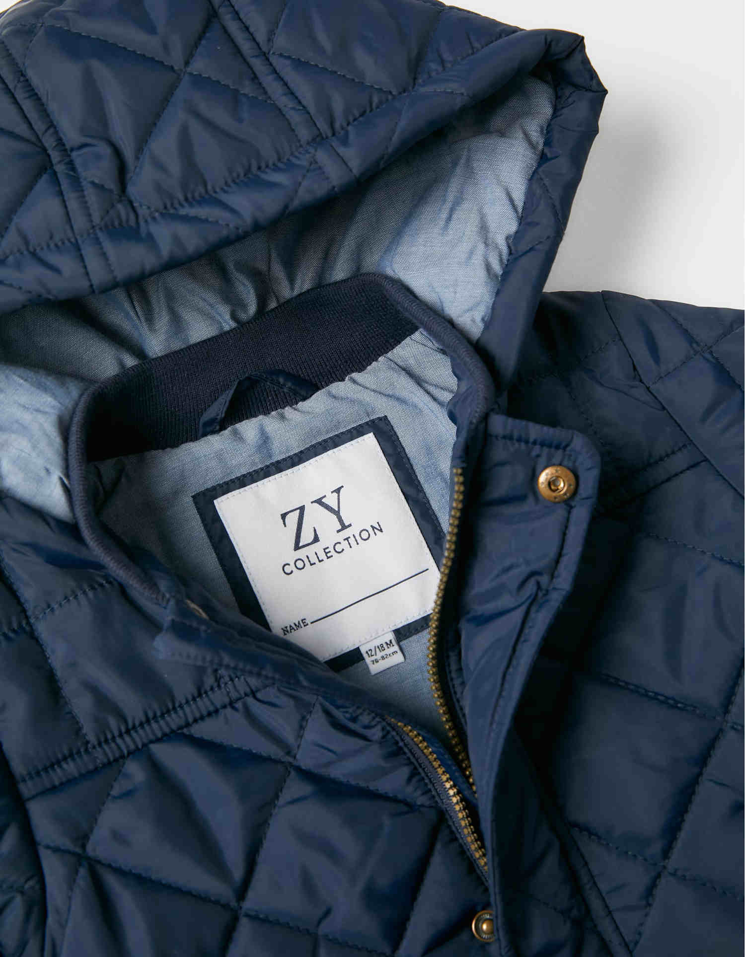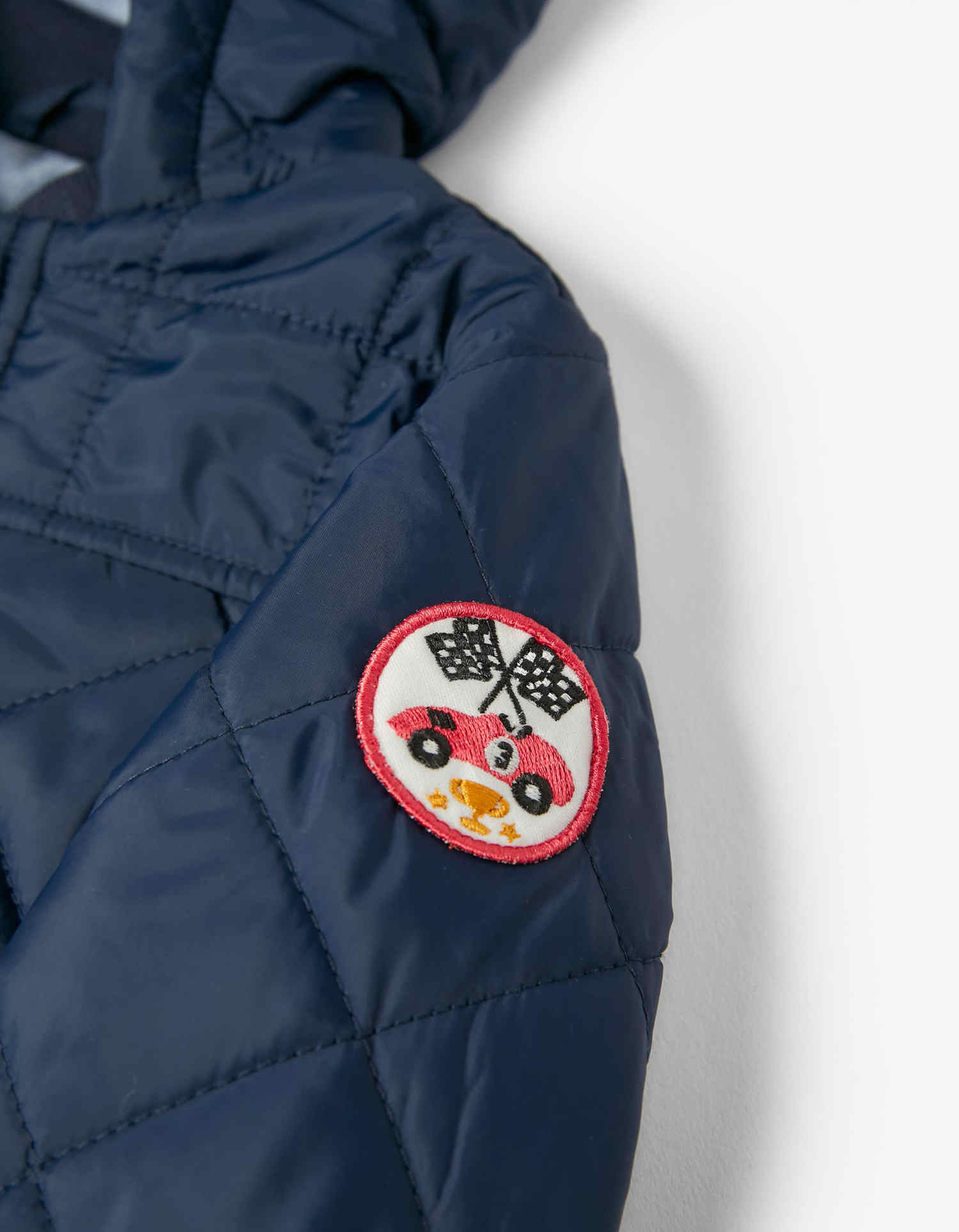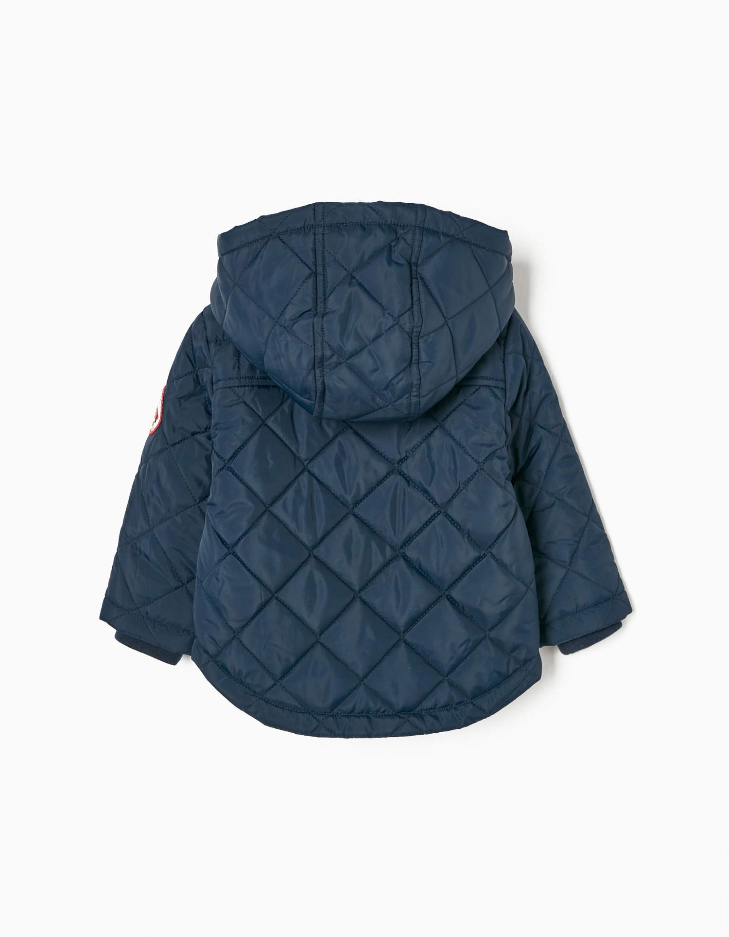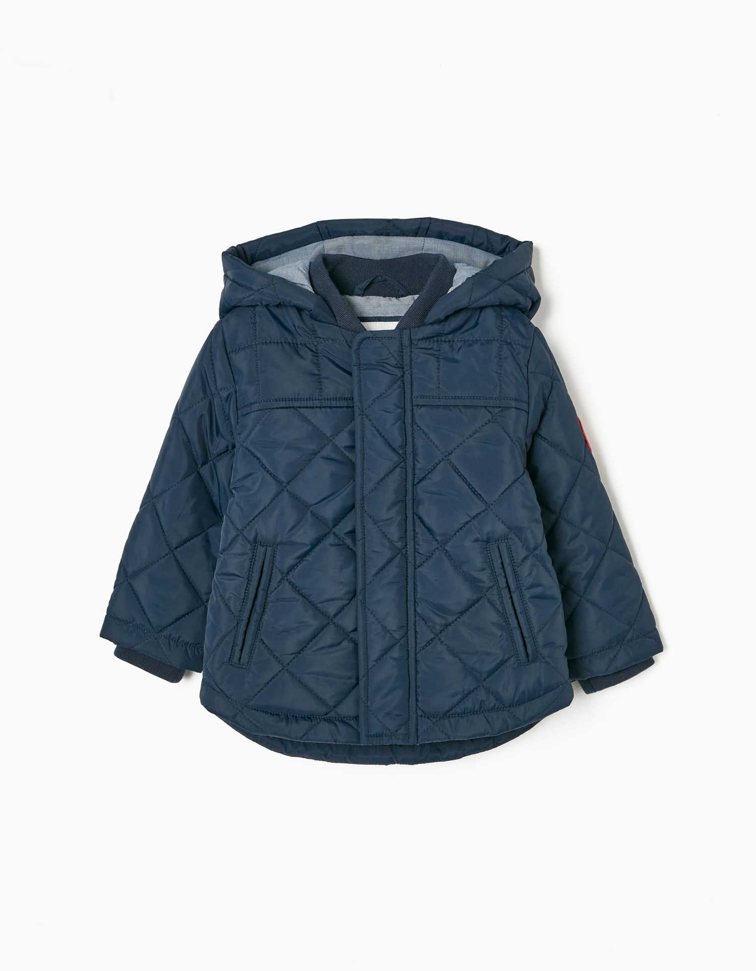 Σκούρο μπλε καπιτονέ μπουφάν με κουκούλα και εσωτερική επένδυση. Κλείνει με φερμουάρ και κουμπιά. Δύο τσέπες μπροστά. Ένα άνετο, διαχρονικό μπουφανάκι που ταιριάζει με κάθε στυλ.