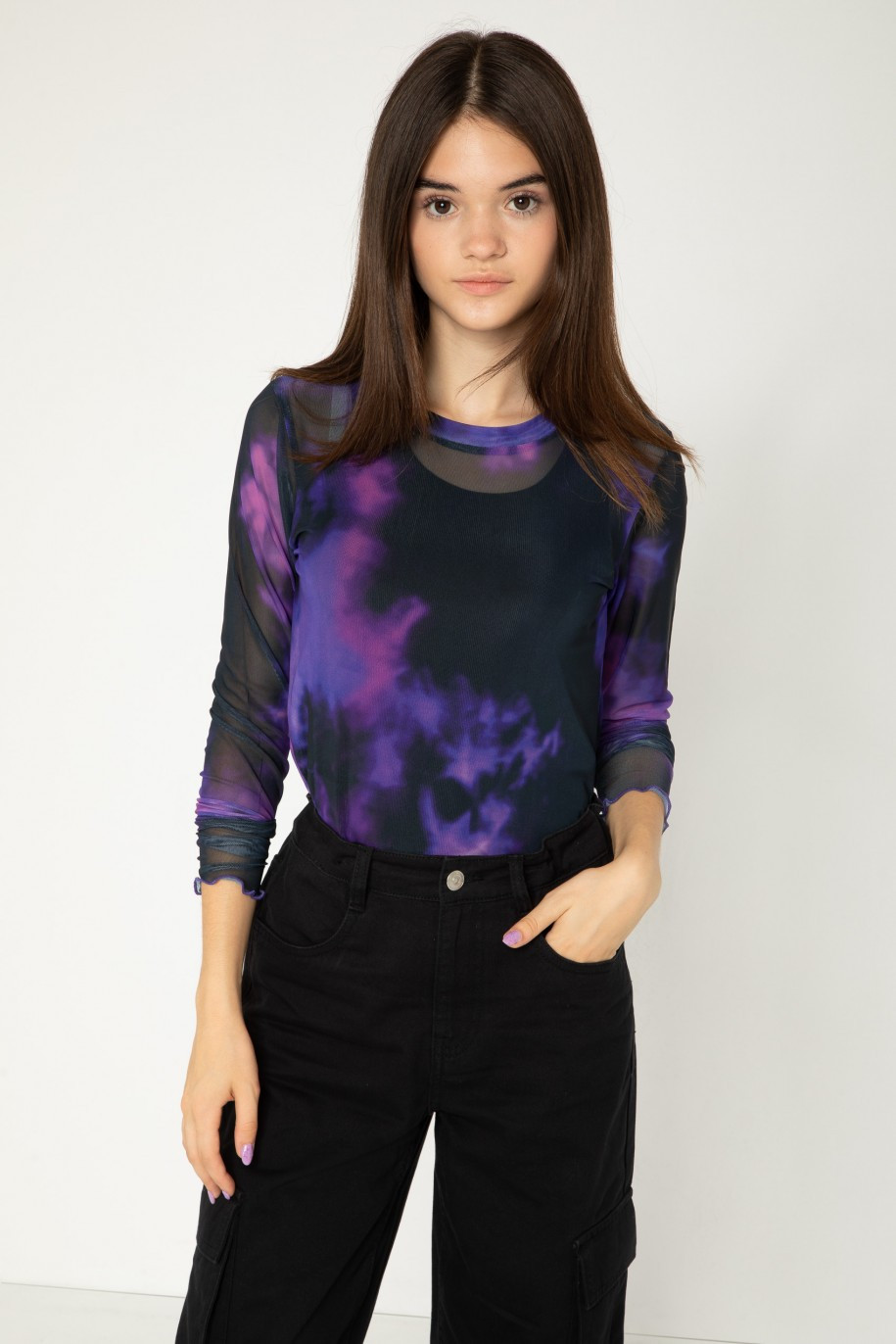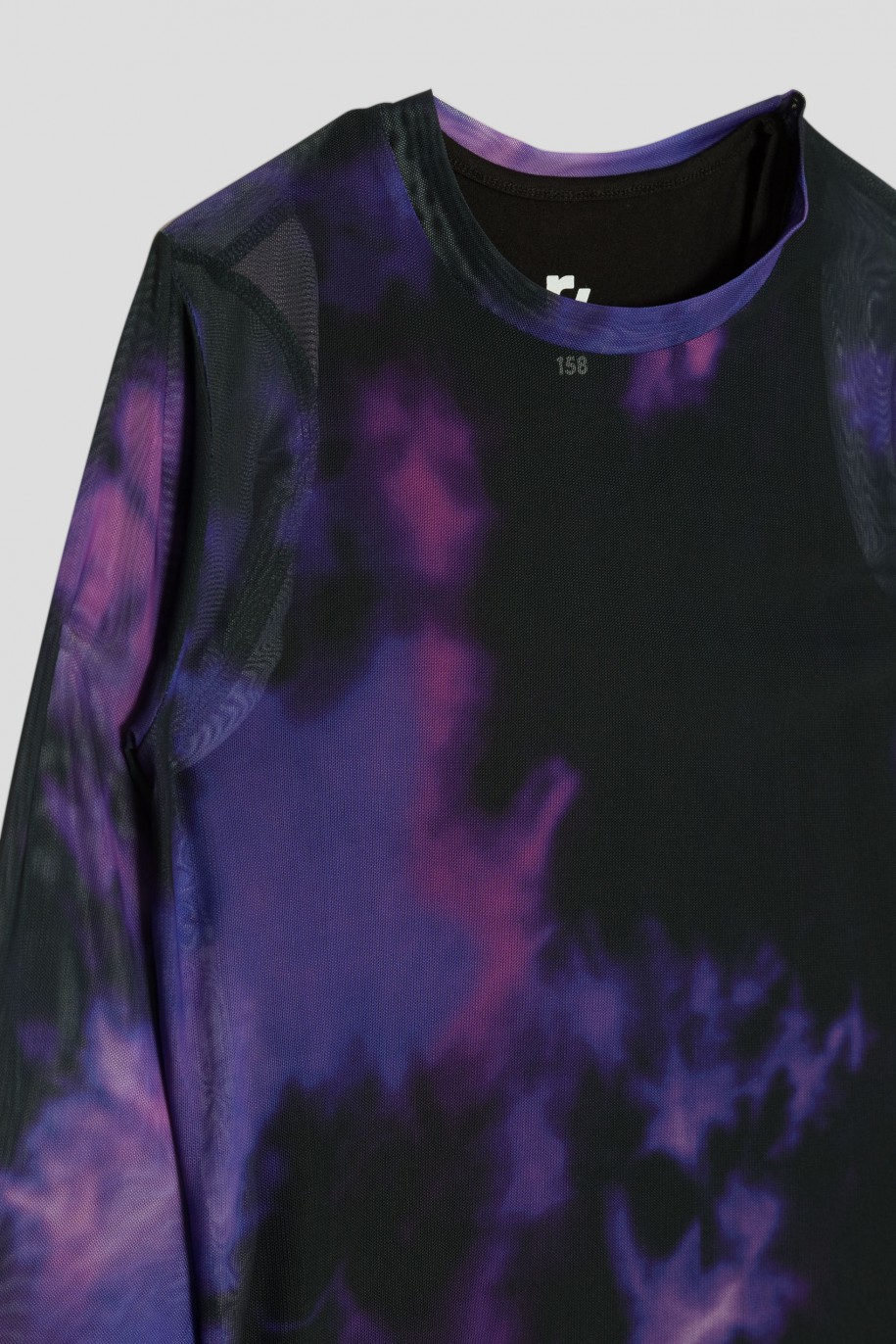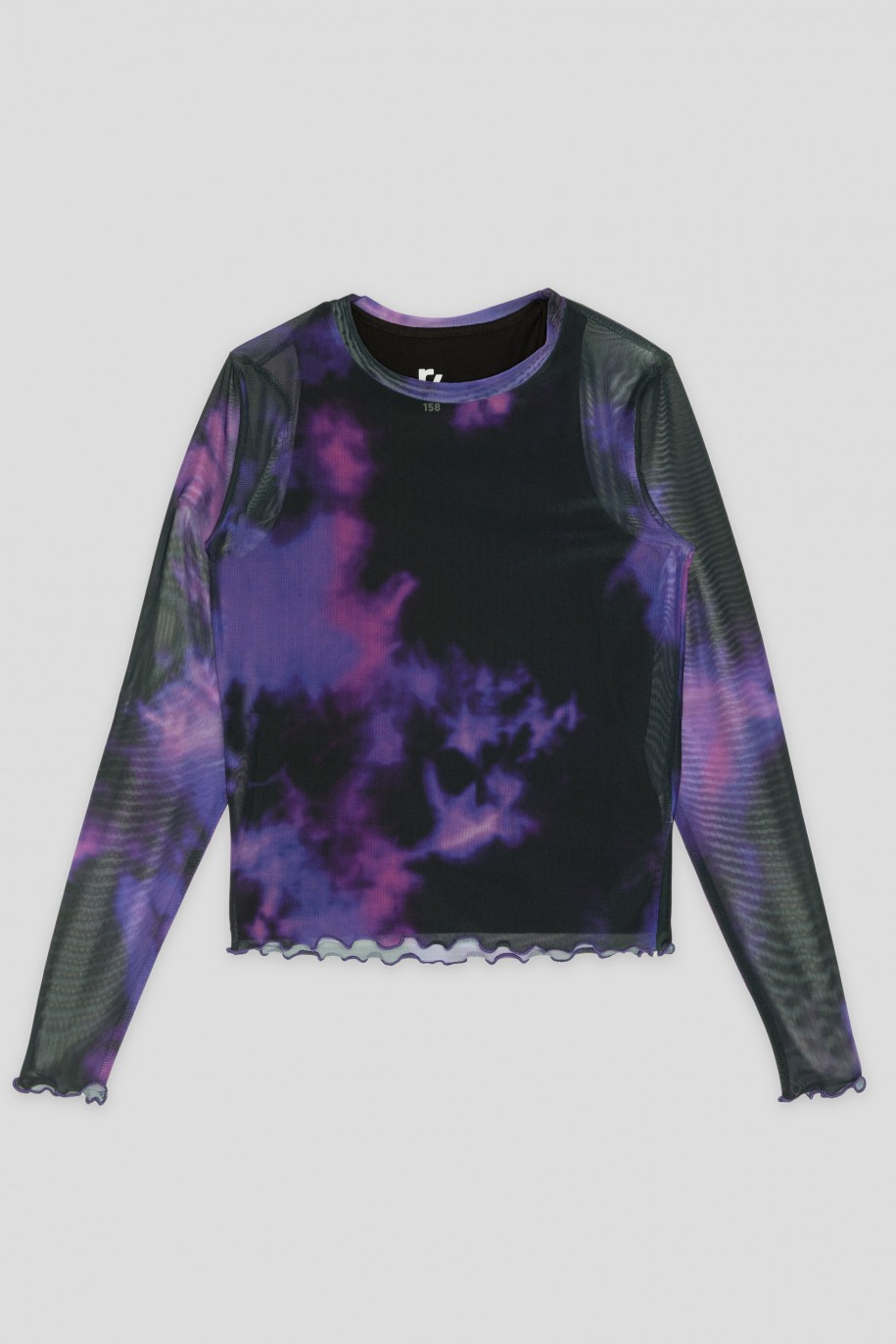 Μακρυμάνικη μπλούζα tie dye από ελαστικό τούλι. Διατίθεται με αμάνικη βαμβακερή μαύρη μπλούζα.