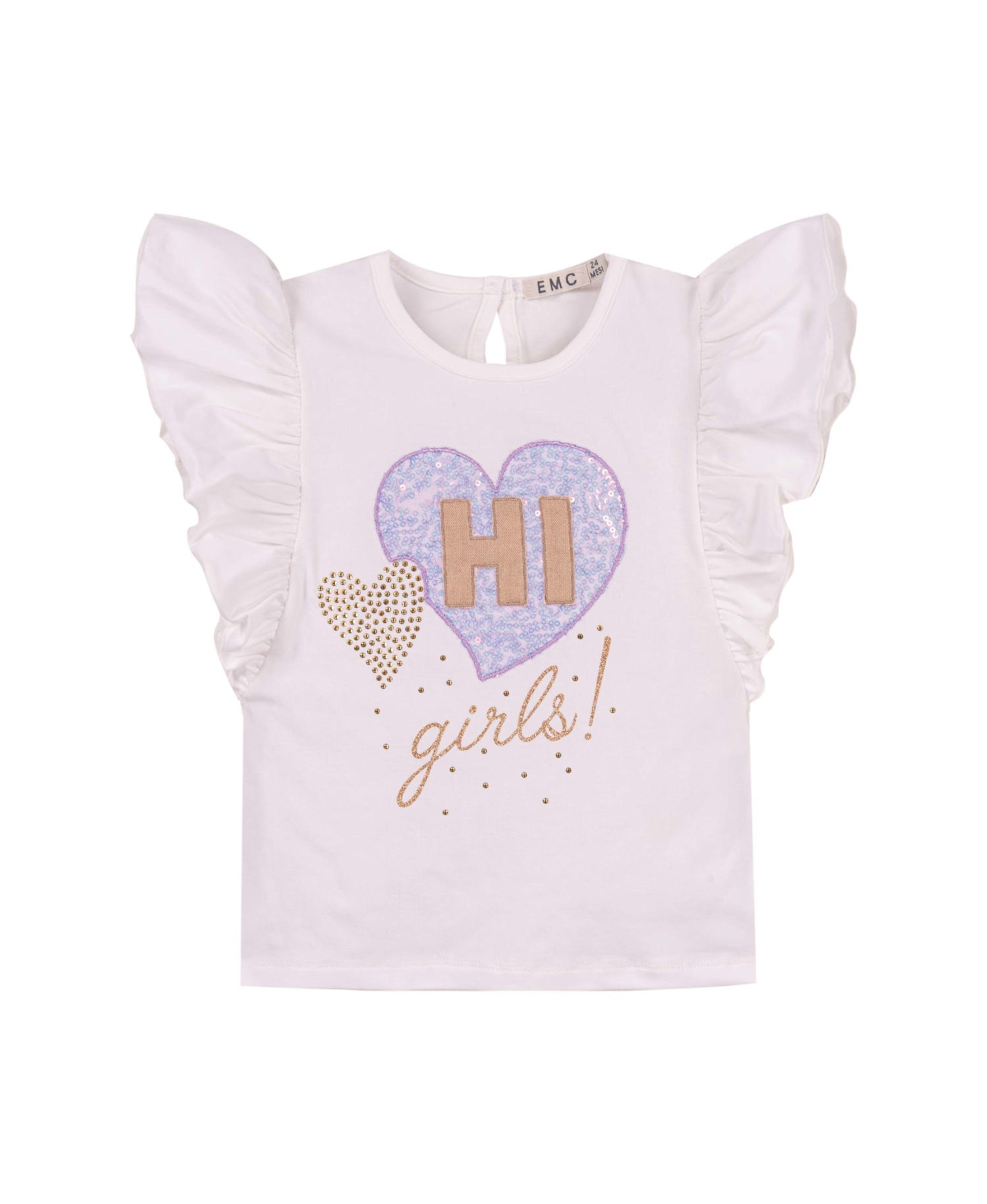 Παιδική βαμβακερή μπλούζα με βολάν στα μανίκια. Κουμπώνει με κουμπί στο πίσω μέρος για εύκολη εφαρμογή.