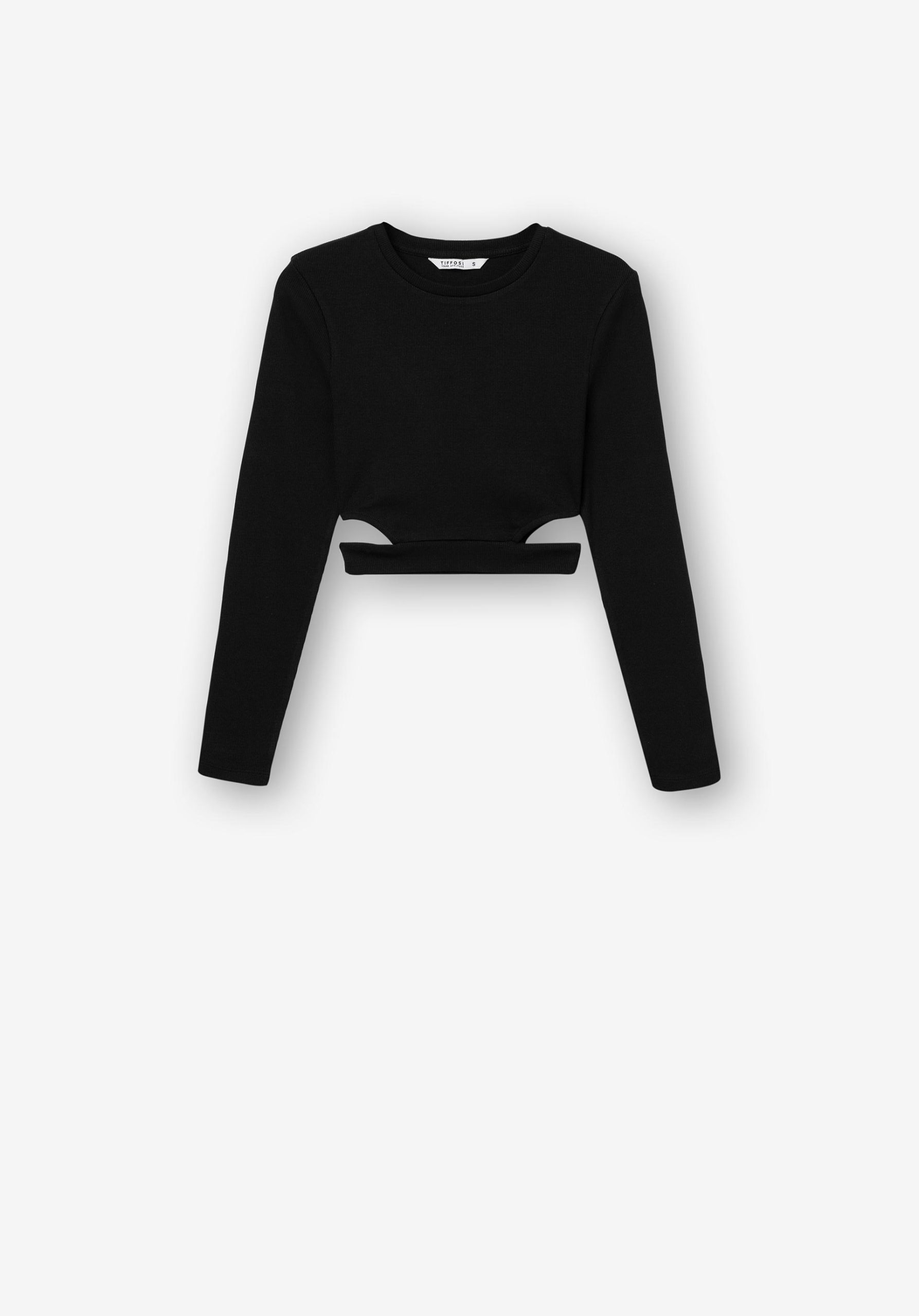 Μακρυμάνικη μπλούζα με κοψίματα στα πλάγια. Στρογγυλή λαιμόκοψη. Διατίθεται σε δύο χρώματα ,μαύρο και λευκό.