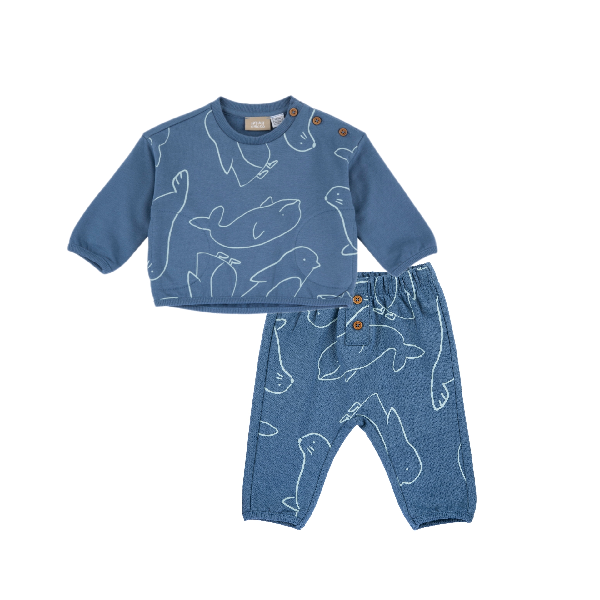 - Μπλούζα με pattern δελφίνια, στρογγυλή λαιμόκοψη, κουμπάκια στο πλάι για εύκολη εφαρμογή.