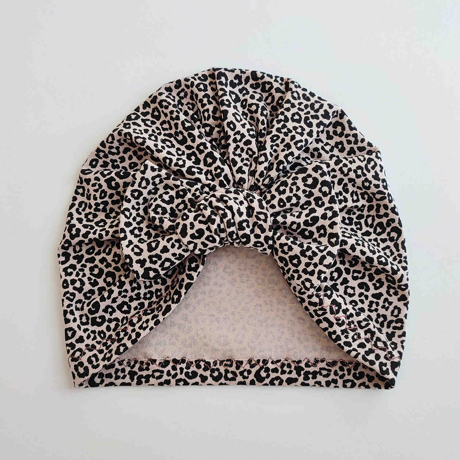 Βαμβακερό χειροποίητο τουρμπάνι με δετό φιογκάκι σε λεοπάρ σάπιο μήλο.