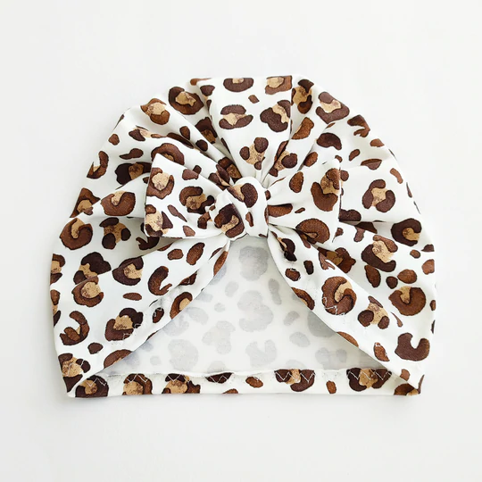 Βαμβακερό χειροποίητο τουρμπάνι με δετό φιογκάκι σε λεοπάρ.