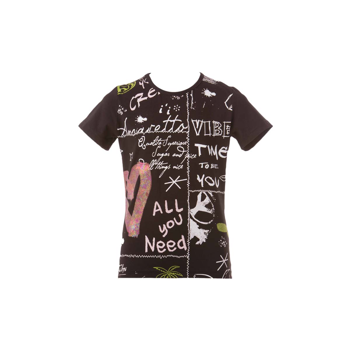 Κοντομάνικη μπλούζα με σχέδια στην μπροστινή όψη της μπλούζας και μονόχρωμη στην πίσω. Δύο χρώματα, λευκό και μαύρο.