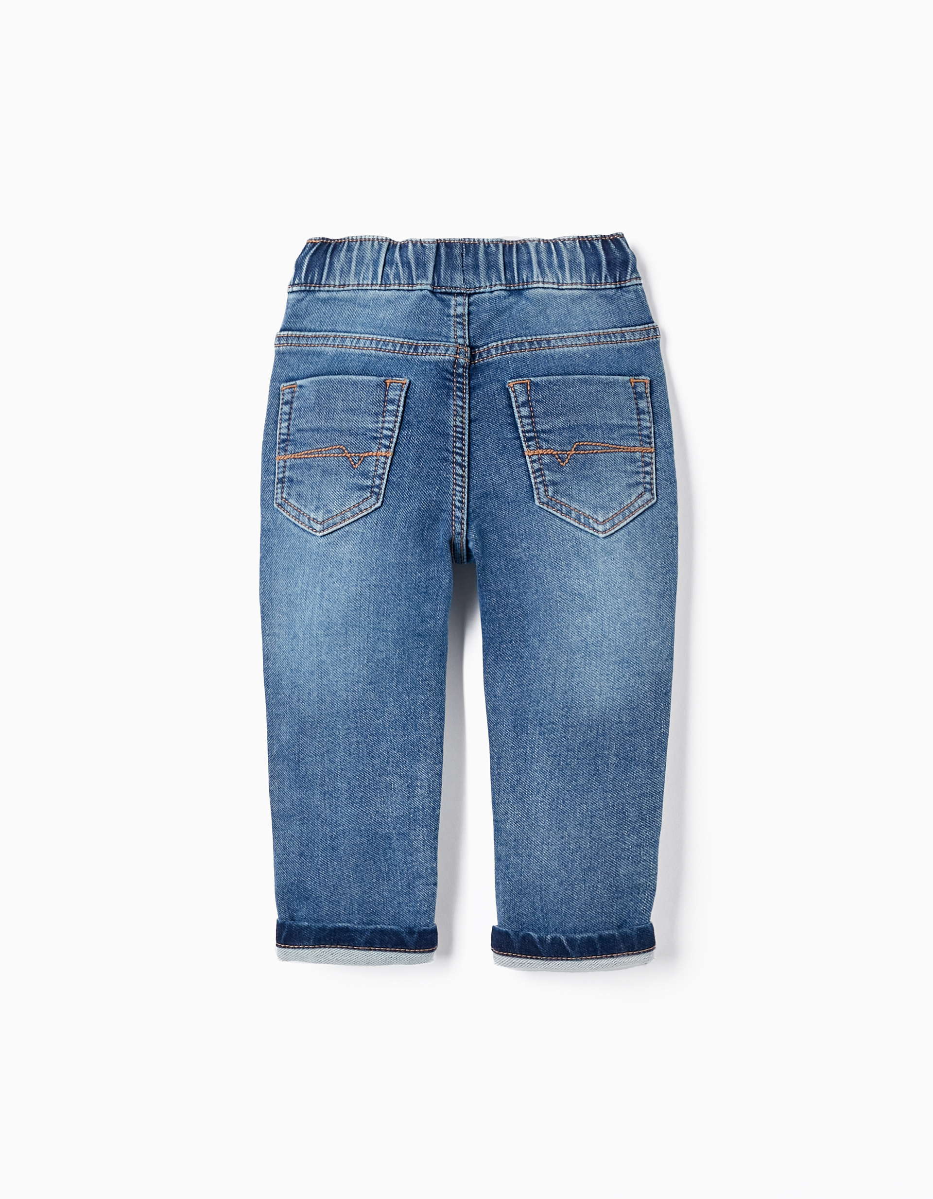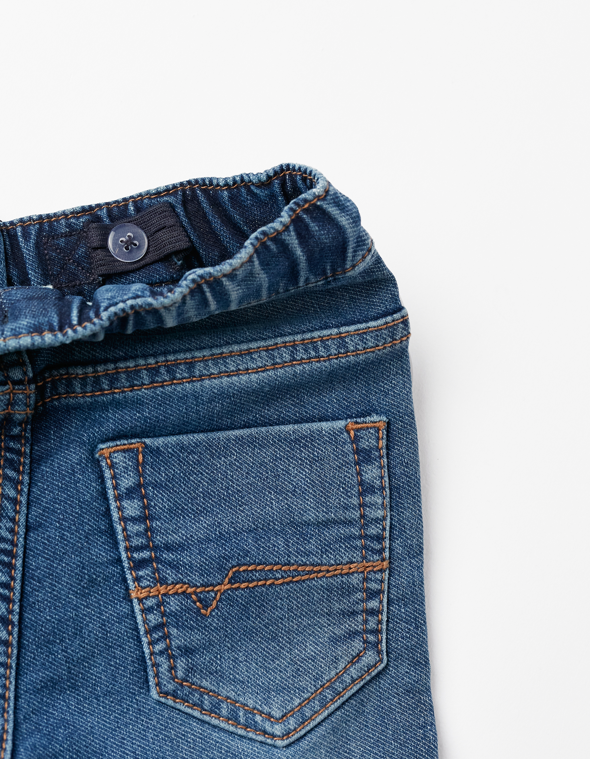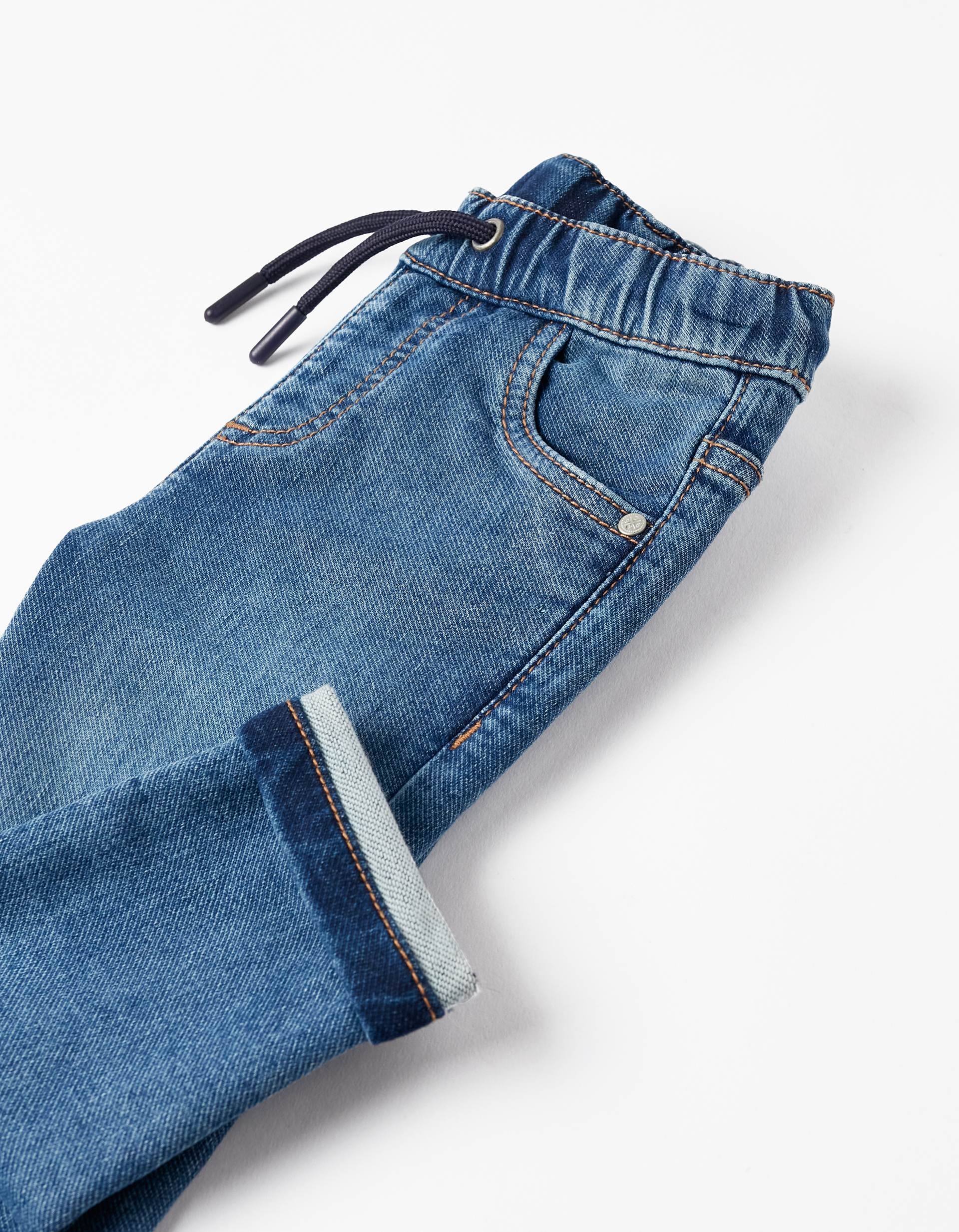 Μπλε τζιν παντελόνι για αγοράκια, από βαμβάκι με μια πινελιά ελαστικότητας για μεγαλύτερη άνεση και ελευθερία κινήσεων. Ρυθμιζόμενη ελαστική ζώνη μέσης στο εσωτερικό και κορδόνι. Πέντε τσέπες. Ένα sporty τζιν σχεδιασμένο να παρέχει μέγιστη άνεση και ελευθερία κινήσεων στο μωρό σας.